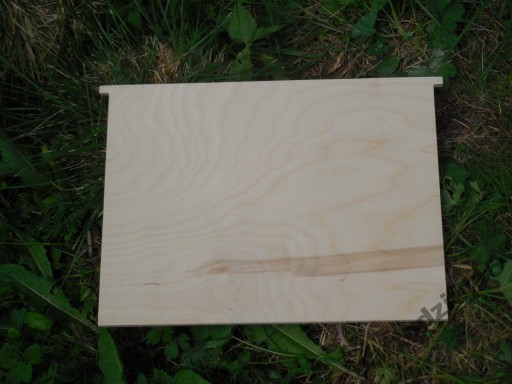 wykonana ze sklejki drewnianej wodoodpornej o grubości 7mm. Pasuje do wszystkich uli wielkopolskich (rozmiar 373mm x 290mm, w najszerszym miejscu "wąsy" 393mm)
