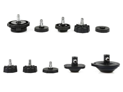 Zestaw zawiera 8szt. adapterów do zbiorniczka płynu hamulcowego, 3szt. adapterów uniwersalnych, pojemnik na zużyty płyn hamulcowy wraz z przewodem i gumowym adapterem.