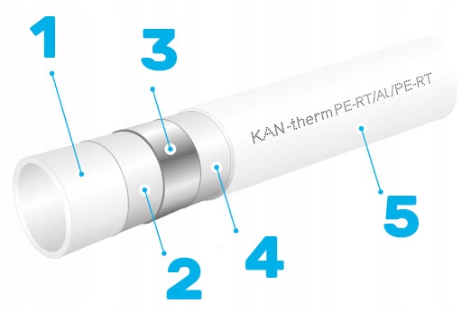 Wszystkie rury PE-RT wykonane są w konstrukcji pięciowarstwowej, trwale połączonej podczas procesu produkcyjnego. Posiadają barierę antydyfuzyjną EVOH, która zabezpiecza przed dyfuzją tlenu z otoczenia do medium instalacyjnego. Dzięki umieszczeniu wewnątrz konstrukcji rury, osłona EVOH jest skutecznie chroniona przed mechanicznymi uszkodzeniami podczas montażu na budowie.