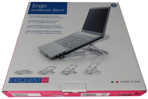 Ergonomiczna podstawka pod laptopa włoskiej firmy Exponent. Wykonana z super mocnego tworzywa. Posiada niezawodny, zapadkowy system regulacji wysokości. Podkładka została tak skonstruowana, że nawet po długim i intensywnym użytkowaniu zachowuje swoje wszelkie właściwości.