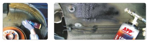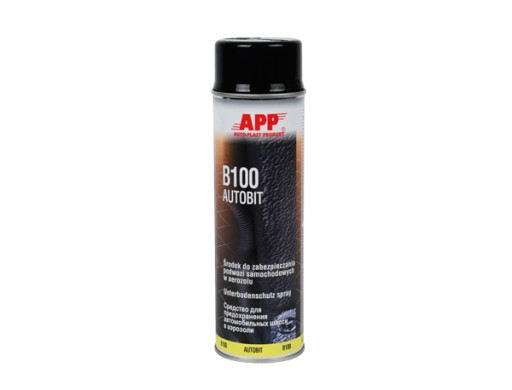 APP B100 AUTOBIT to natryskowa masa bitumiczna o właściwościach antykorozyjnych i wygłuszających do długotrwałej ochrony antykorozyjnej podwozi samochodów osobowych, autobusów, pojazdów ciężarowych i maszyn budowlanych.