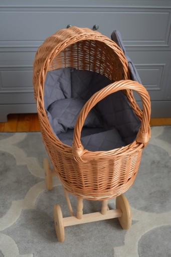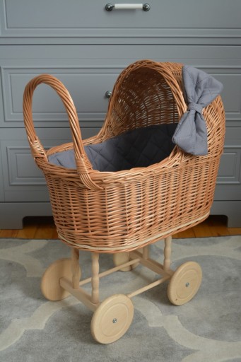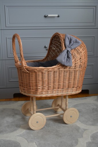 Wózek wiklinowy dla lalek naturalny.