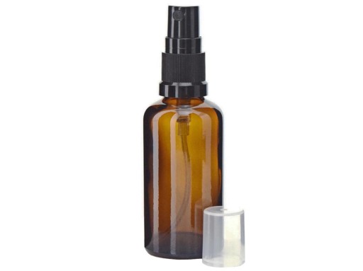 butelka kolor bursztynowy , atomizer kolor biały lub czarny, nasadka zabezpieczająca bezbarwna
