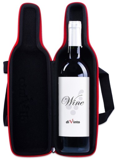 Po wyjęciu akcesoriów, do etui można włożyć butelkę wina.