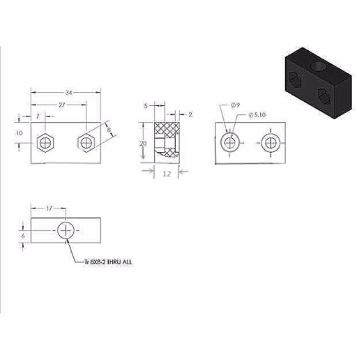 Blok mocujący do śrub trapezowych 8mm skok 2mm V-SLOT