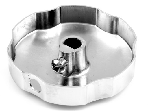 Pokrętło metalowe syfonu wannowego automatycznego.