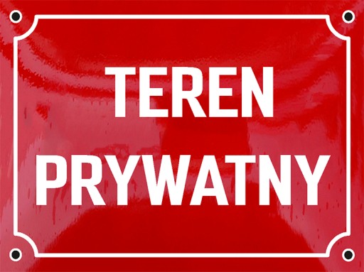 Tablica emaliowana z napisem "Teren Prywatny" na budynek (zewnętrzna) - rozmiar 20 cm x 15 cm