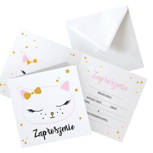 ZAPROSZENIA na Urodziny dziecka Słodki Kotek 10szt (+koperty)