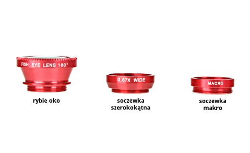 Prezentujemy zestaw trzech uniwersalnych konwerterów, przeznaczonych do telefonów komórkowych i smartfonów! Jest do idealny dodatek do naszego smartfona, jeśli lubimy robić zdjęcia i chcemy zwiększyć nasze możliwości! Od teraz, w kilka chwil, będziemy mogli kadrować w sposób, jakiego nie powstydziliby się właściciele dużych i ciężkich aparatów! Obiektywy wykonano z lekkiego stopu metali, który jest bardzo trwały i odporny na uszkodzenia mechaniczne.