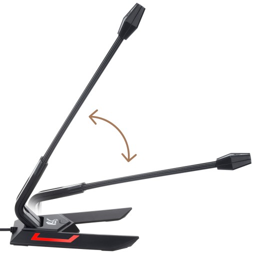 Elastyczny pałąk zapobiega przypadkowemu uszkodzeniu mikrofonu podczas rozgrywki, a regulacja wysokości pozwala na dostosowanie położenia mikrofonu do własnych preferencji.