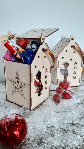 - domek na słodkości - wypełnij cukierkami lub włóż upominek - masz gotowy prezent Mikołajkowy