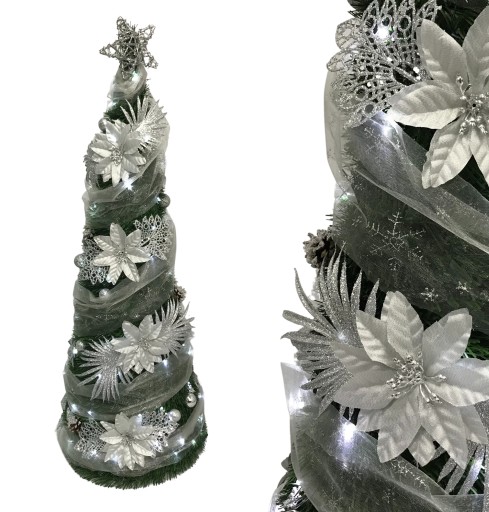 ДЕКОРИРОВАННЫЙ КОНУС РОЖДЕСТВЕНСКИЙ ОРНАМЕНТ ИСКУССТВЕННАЯ РОЖДЕСТВЕНСКАЯ ЕЛКА УКРАШЕННАЯ 130см + LED