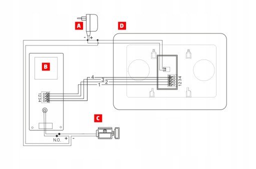 - Napięcie wyjściowe dla rygla elektromagnetycznego: 12 V DC