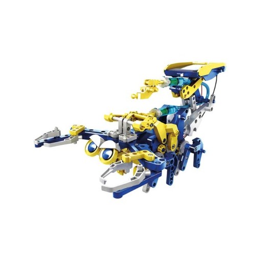 Wysokiej jakości edukacyjny zestaw konstrukcyjny 12 w 1 to zestaw dla małego konstruktora, uczący wykorzystywać energię słoneczną i hydrauliczną. Montaż zestawu pozwala poznać podstawowe zagadnienia związane z elektroniką i mechaniką, zapewniając przy tym doskonałą zabawę! Robot może zostać przekształcony w dwanaście różnych zwierząt i robotów mechanicznych (małpa, T-Rex, skorpion, koparka, itp.). Robot zasilany jest przez słońce i wodę, nie wymaga baterii.