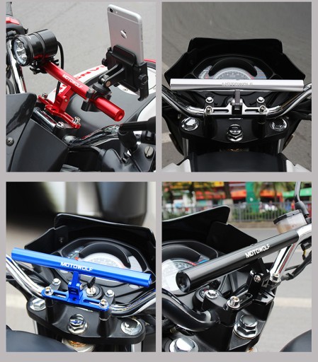 Uchwyt wielofunkcyjny na kierownicę motocykla wykonany ze stopu aluminium
