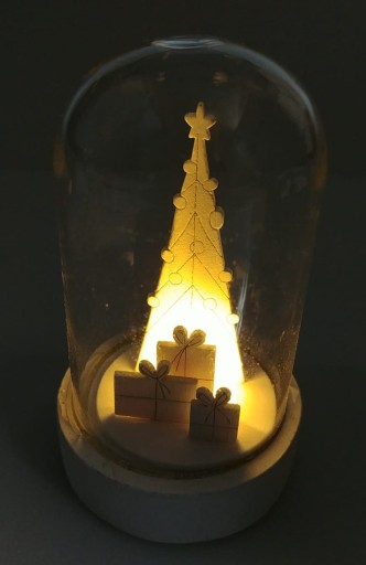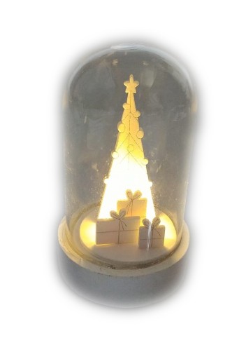 Dekoracja LED, ozdoba przestrzenna podświetlana diodą LED, wykonano z drewna i szkła, certyfikaty CE i DEKRA, zasilanie bateryjne - bateria w zestawie, idealna do każdego wnętrza, wykonana z bezpiecznych i certyfikowanych materiałów