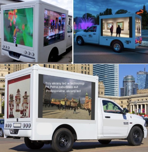 Uwaga ; Cena na tej aukcji dotyczy wyłącznie jednego modułu led full color w technologii eco P4 o wymiarach 16 mm x 32 mm., który został użyty do wykonania większych ekranów jakie są na zdjęciach poglądowych w zabudowie auta. Moduł w pełni wodoszczelny do zastosowań zewnętrznych.