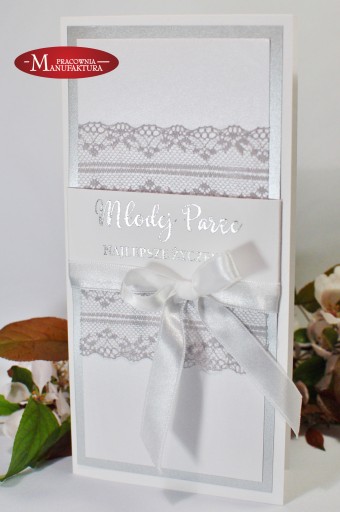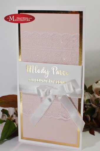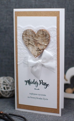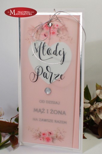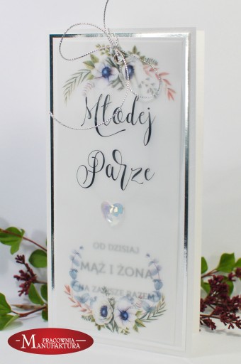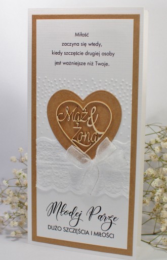 Przedmiotem aukcji jest oryginalna, ręcznie wykonana kartka z okazji Ślubu