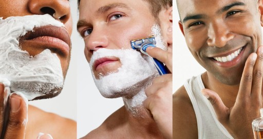 Nowoczesny reduktor wzrostu włosów dla mężczyzn przed i po goleniu.