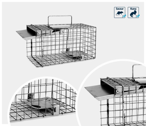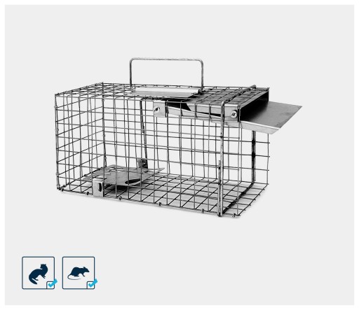 - Stalowa pułapka na szczury o wymiarach 35x17x20 cm