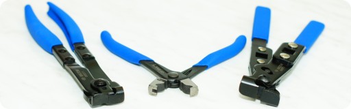 Szczypce te wykonane są z grubej , masywnej blachy. Wyposażone zostały w prasę dociskającą, która zapewnia estetyczne i zwarte zaciśnięcie ucha opaski poprawiając tym samym siłę kompensacji łączonych elementów.