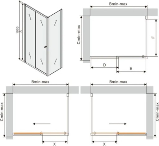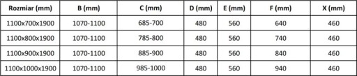 - Szerokość: 110 cm (drzwi), 90 cm (ścianka)