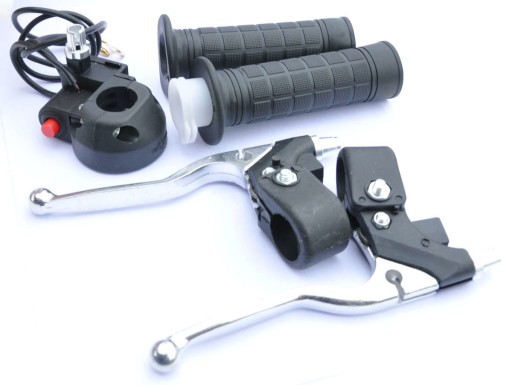 Zestaw dźwigni z mocowaniami, korpusem gazu i wyłącznikiem do pojazdów typu mini cross, pocket bike, mini ATV.