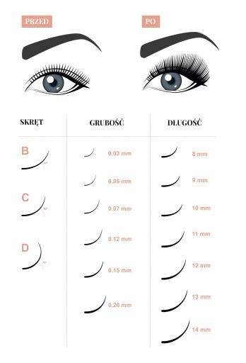 skręt: C, grubość rzęs: 0,05 mm.