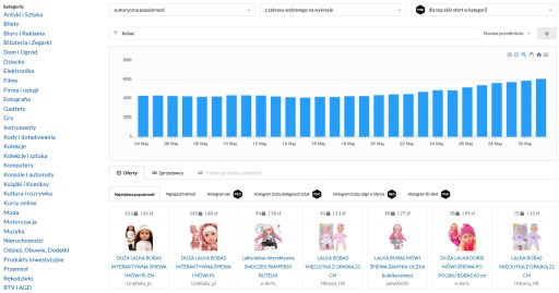 - Statystyki Sprzedaży i Ofert Allegro, umożliwiający analizę hitów sprzedaży, historii cen, popularności ofert sprzedawców Allegro w ujęciu czasowym.