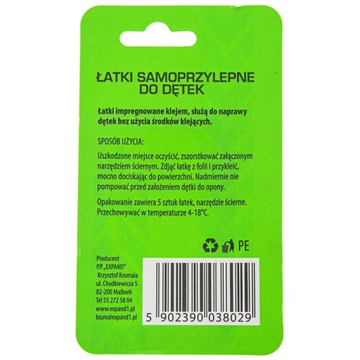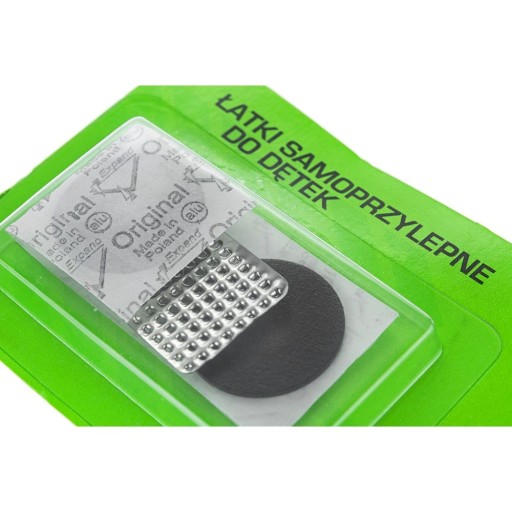 Zestaw łatek impregnowanych klejem, służących do naprawy dętek bez użycia środków klejących.