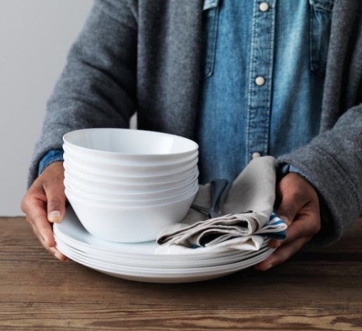 Ta zastawa stołowa wygląda tak samo jak porcelana kostna, ale jest wykonana ze szkła hartowanego.