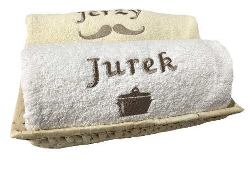 Komplet dwóch ręczników 70x140 w ozdobnym koszu z własnym haftem w postaci imienia, ksywki, krótkiej dedykacji, bądź swojego indywidualnego tekstu.