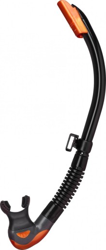 Zdejmowany, dwuczęściowy, obrotowy uchwyt mocujący dla maksymalnej wygody: Fajkę TUSA Platina II Hyperdry można zgiąć zwinąć i schować do kieszeni jacketu lub skafandra bez obawy że się połamie.