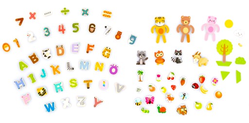 Drewniana tablica kredowo-magnetyczna wraz z magnetycznymi, kolorowymi elementami układanki to świetny zestaw do kształcącej i ciekawej zabawy!