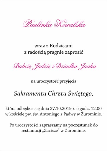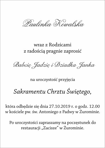 Podstawowy tekst zaproszenia jest taki, jak widoczny na zdjęciach.