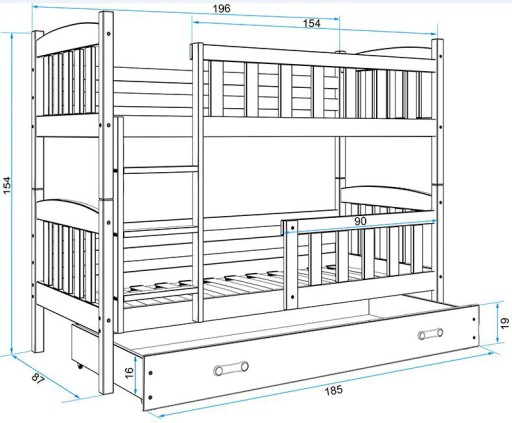 Łóżko piętrowe Kubuś zawiera: