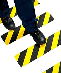 Taśma do wyznaczania miejsc niebezpiecznych 3M™ 766 taśma winylowa w czarno-żółte paski. Jest używana do oznaczania obszarów występowania zagrożeń, wystającego sprzętu lub do zapobiegania wypadkom w fabrykach, magazynach i szpitalach.