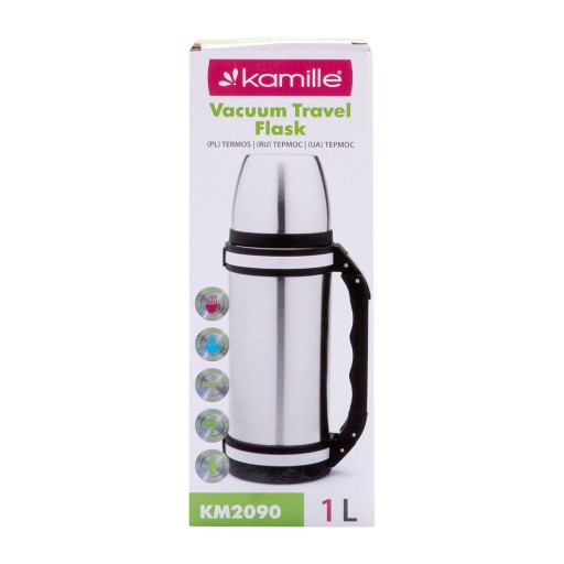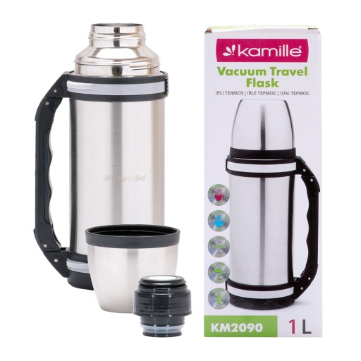 Termos próżniowy ze stali nierdzewnej z uchwytem 1,0 L KAMILLE KM-2090