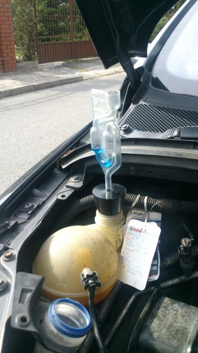 Podczas testu płyn zmienił kolor co oznacza uszkodzoną uszczelkę bądź pękniętą głowicę. Gazy wylotowe dostały się do układu chłodzenia, weszły w reakcję z płynem i zmieniły jego kolor.