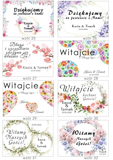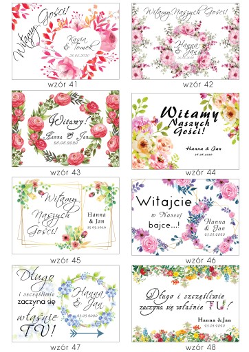 Do kompletu mamy niemal wszystko - tablice rejestracyjne, plany stołów, księgi gości, skrzynie na koperty i obrączki i wiele wiele innych.