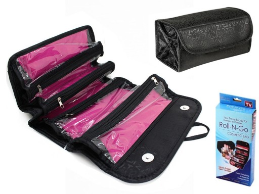Roll n Go to niezbędny organizer na każdą podróż. Bez problemu pomieści wszystkie Twoje przybory toaletowe. Dzięki czterem oddzielnym kieszonkom zasuwanym na zamek umożliwia bezpieczne i czyste przechowywanie kosmetyków czy też innych akcesoriów. Dzięki swoim małym rozmiarom po zawinięciu idealnie nadaje się do damskiej torebki lub torby podróżnej.