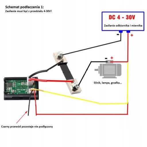 Proszę zwrócić szczególną uwagę na biegunowość podłączenia. Złe podłączenie może doprowadzić do uszkodzenia miernika.
