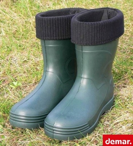 Kalosze wodoodporne wykonane z pianki EVA. Kalosze sięgają do połowy łydki.