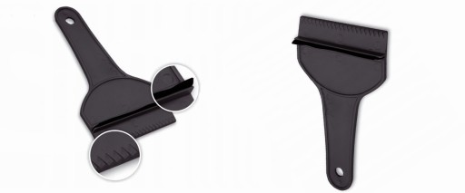 Skrobaczka jest niezwykle poręczna i łatwa w użyciu. Mróz z szyby schodzi za jednym pociągnięciem. Ponadto skrobaczka do szyb została wyposażona w ząbki pozwalające na pozbycie się szronu oraz gumę do pozbycia się wody.