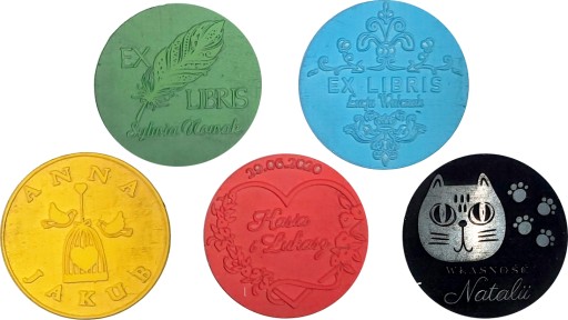 Tekst na wzorach może być dowolnie modyfikowany (np. zamiast napisu "Ex libris" może być "Biblioteka" w innej czcionce).