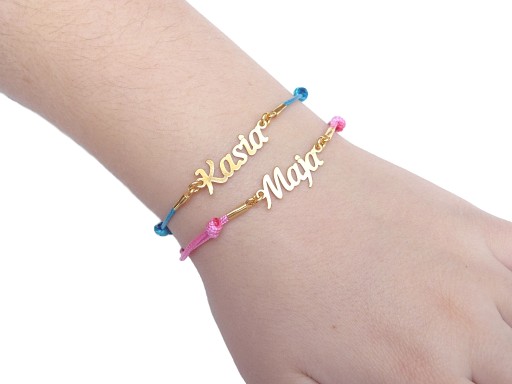 Zdjęcie bransoletki wykonane na ręce 7 - letniej dziewczynki. Ze względu na to iż szerokość jest regulowana bransoletka pasuje również na rękę dorosłej kobiety.