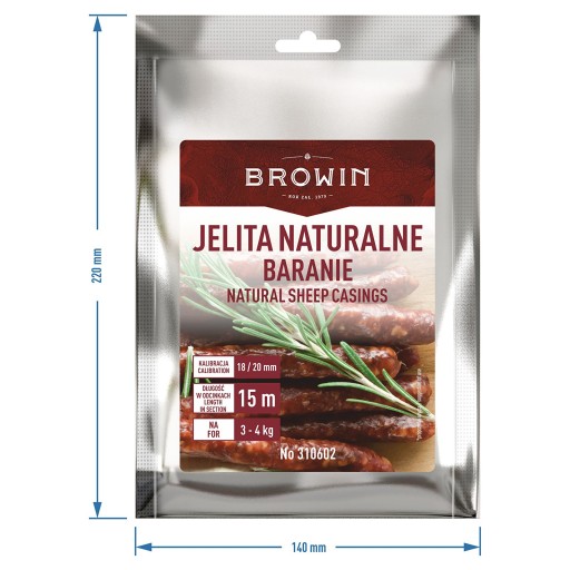 Naturalne jelita baranie do wyrobu różnego cienkich kiełbasek typu kabanosy czy frankfuterki. Jelita zostały zapakowane hermetycznie w obecności soli jako środka konserwującego.