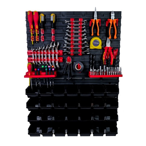 Tablica Binner Board to doskonały sposób na organizację przestrzeni, praktyczny zestaw do przechowywania niezbędnego wyposażenia dla Twojego warsztatu, magazynu, garażu czy pomieszczenia gospodarczego.