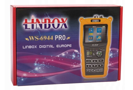 Miernik sygnału satelitarnego, naziemnego i kablowego firmy Linbox model WS-6944 z kolorowym wyświetlaczem LCD.