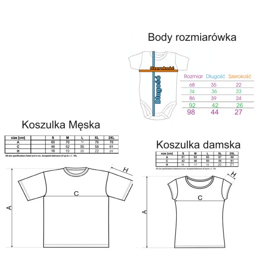 T-shirt z krótkim rękawem + body z krótkim rękawem. Napis na KOSZULCE wykonany metodą termosublimacji, wytrzymały i nie odpada o praniu, NIE BARWI I NIE PUSZCZA KOLORÓW.